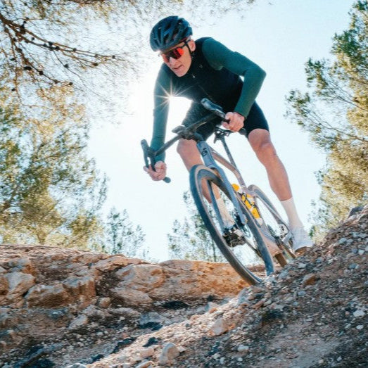 Når Áspero-5 er monteret med lige store dæk (f.eks. 42 mm for og bag), er håndteringen stabil, tillidsvækkende og klar til de mest barske ruter. For at forbedre aerodynamikken yderligere og skærpe håndteringen på mindre tekniske ruter har vi optimeret geo-differentialet til en 4 mm dækbreddedifferentiale (f.eks. 40 mm for, 44 mm bag).